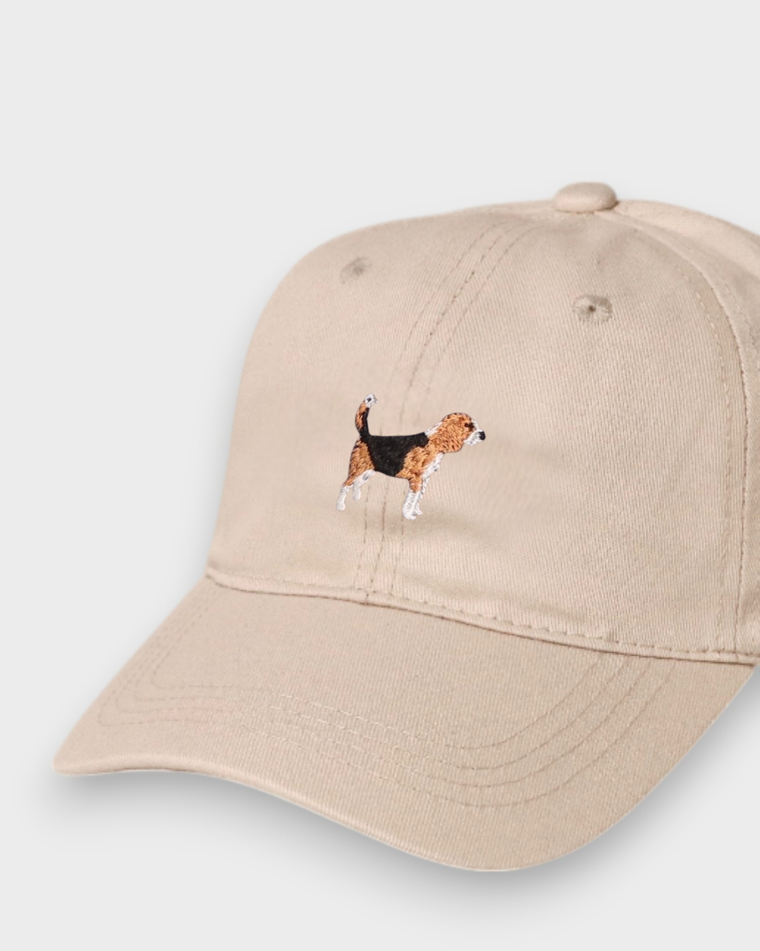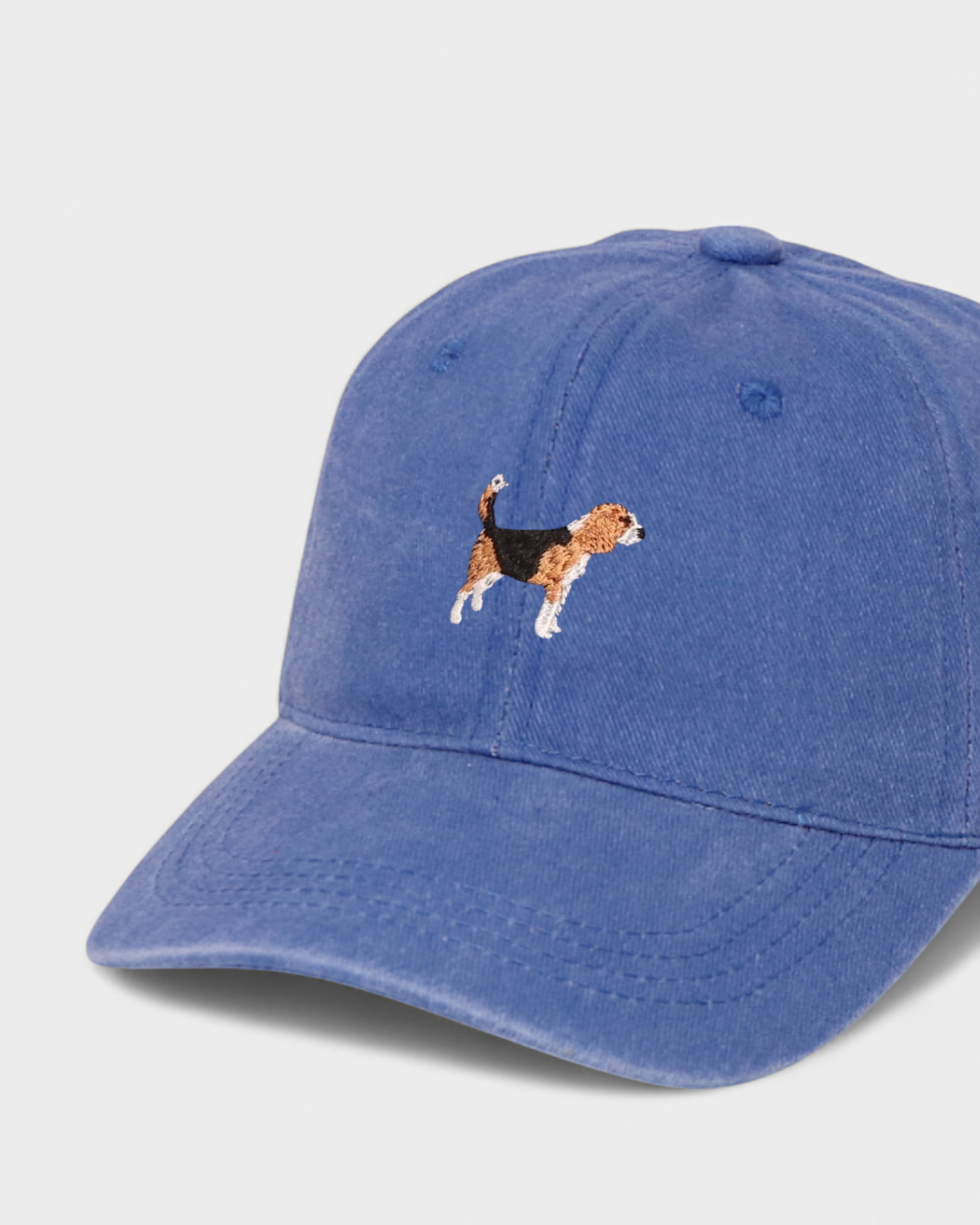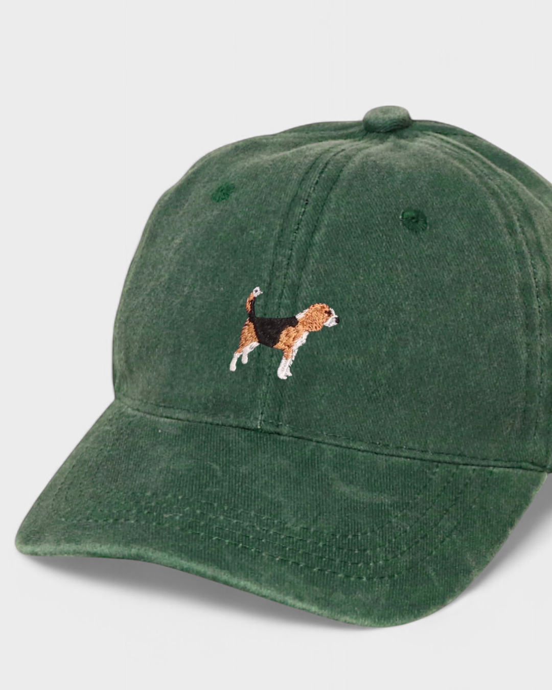 Our Beagle Personalised Hat features our hand-drawn Beagle embroidered design on the front and your choice of personalised embroidery on the back in our custom block or script font. This personalised hat is Ideal for those with a loveable Beagle in their lives.