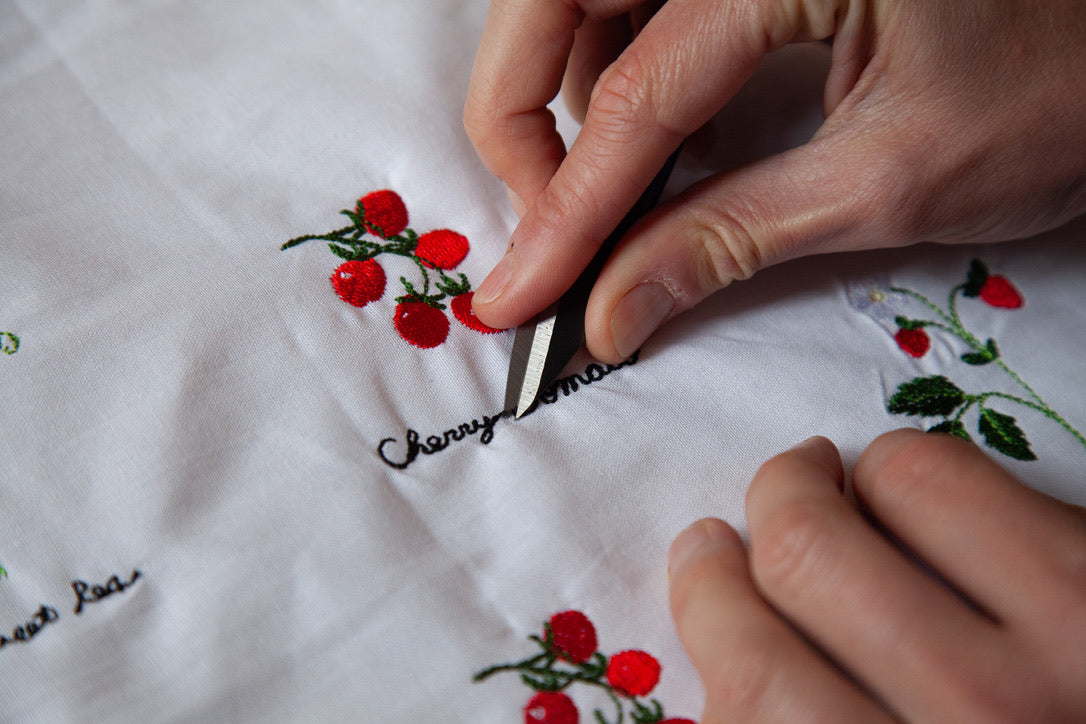 Next, our illustrations are digitally converted stitch-by-stitch into embroidery designs with specialised software