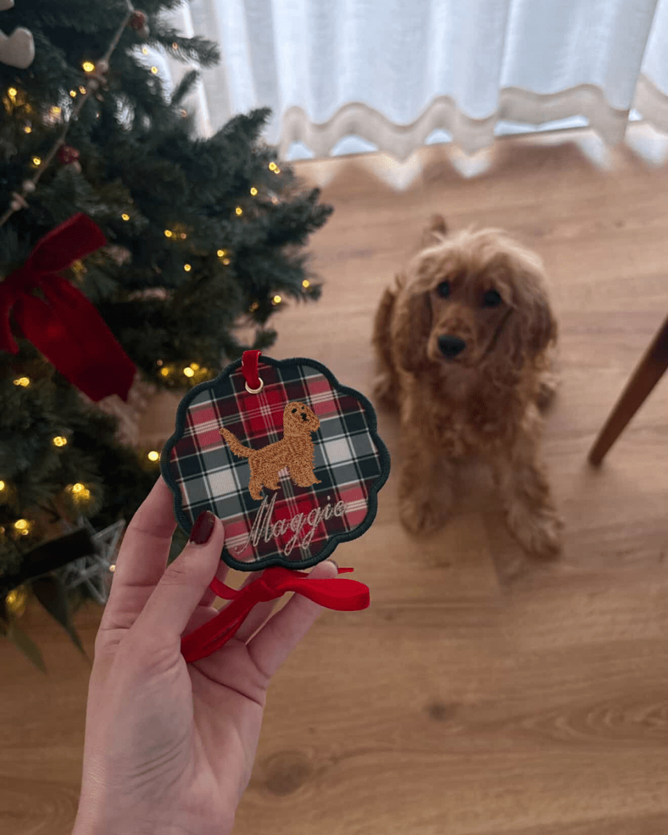 Each keepsake is embroidered-to-order and may vary from the photos based on the personalisation selections. For example, longer personalisations may be smaller to fit inside the maximum embroidery field.