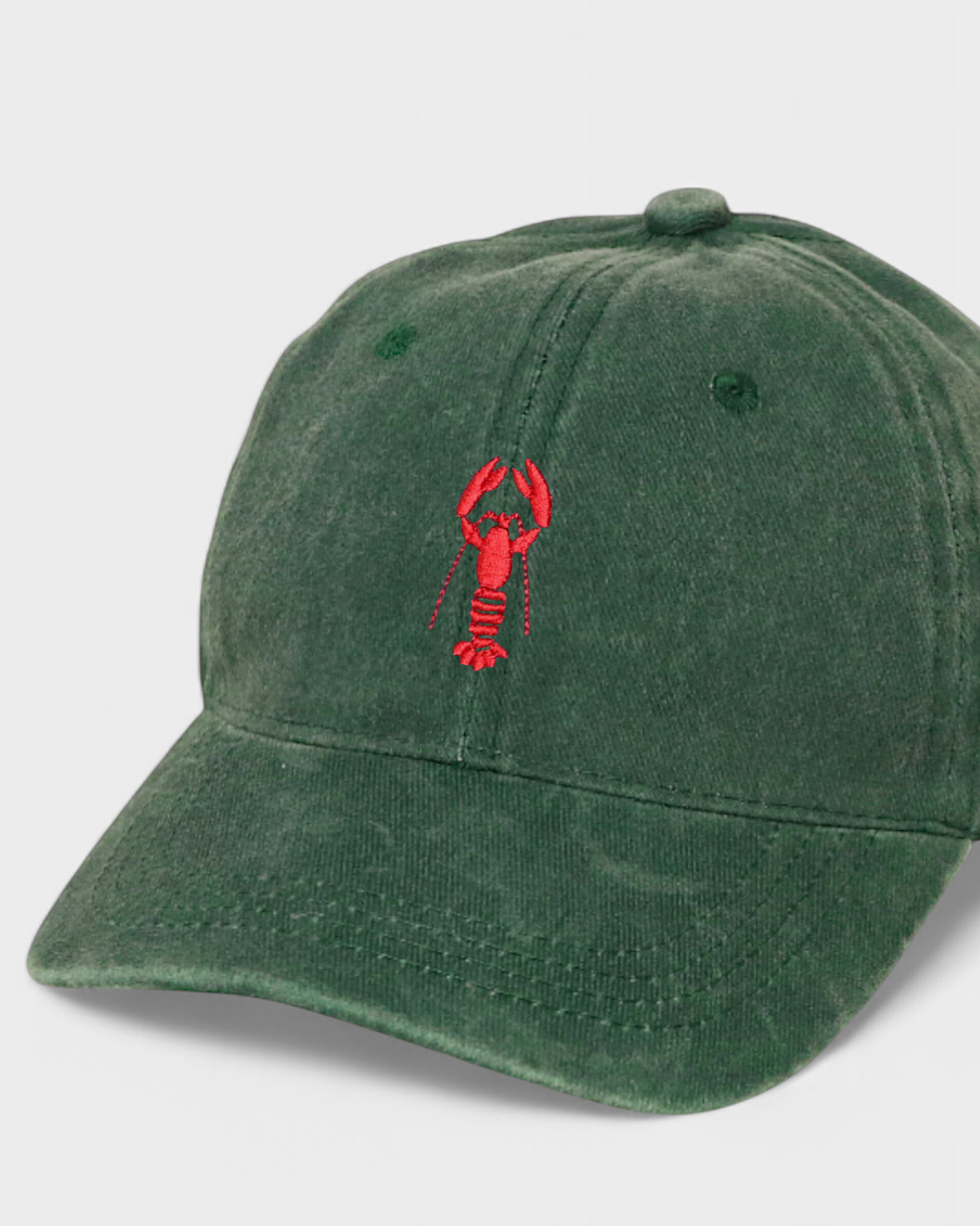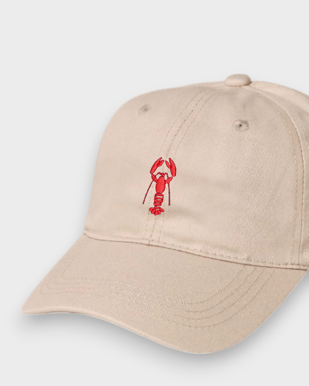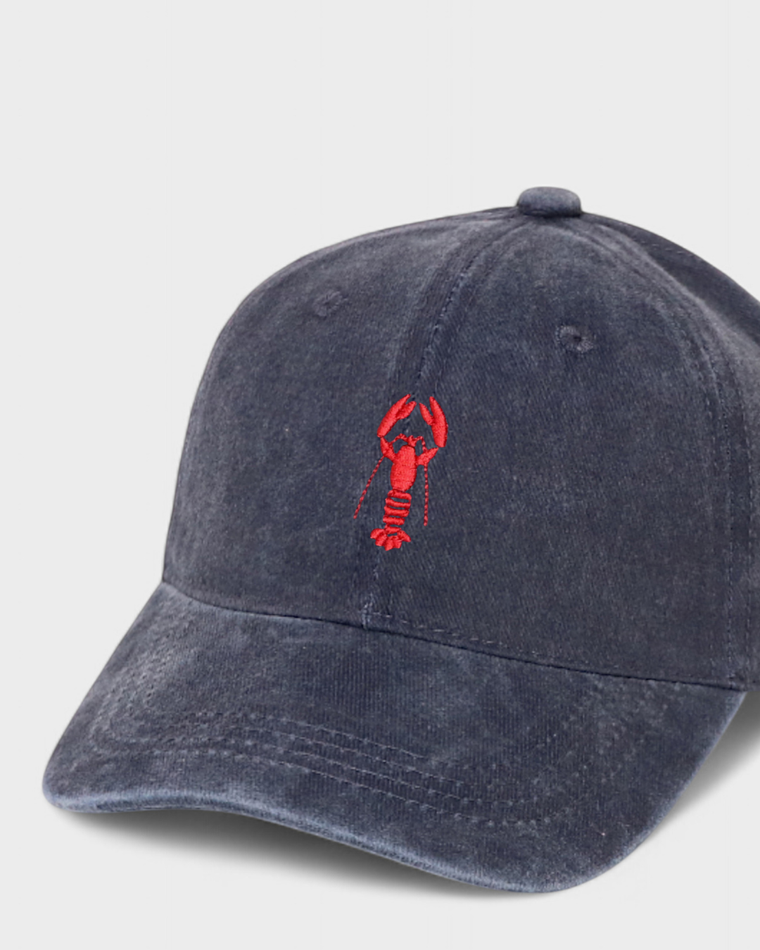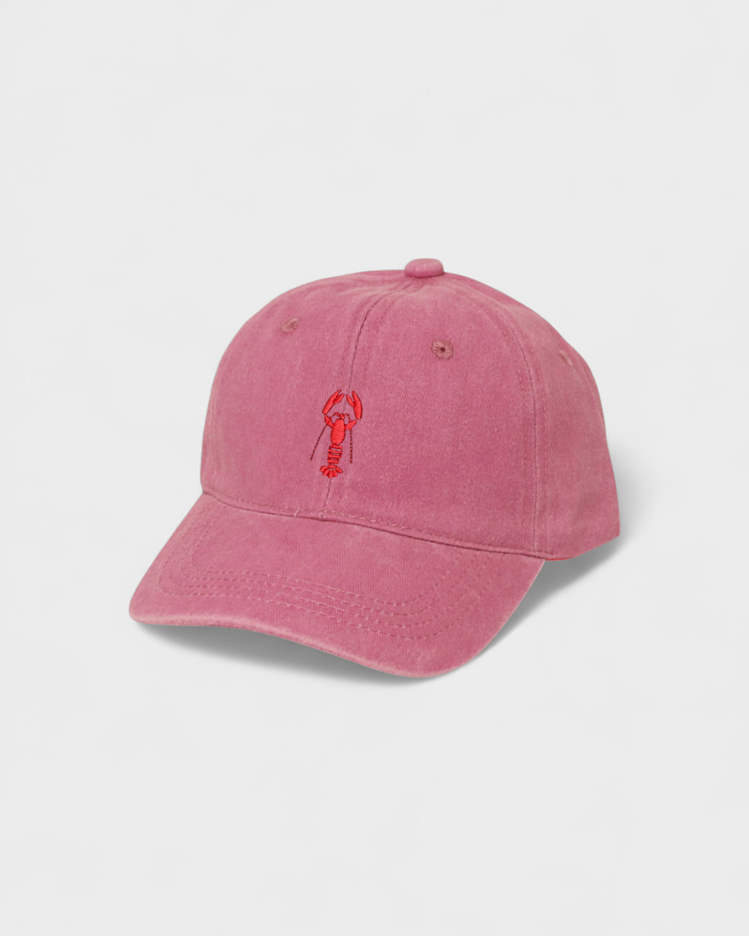 Our Lobster Personalised Hat features our hand-drawn Lobster embroidery design on the front and your choice of personalised embroidery on the back in our custom block or script font. Personalisation is included to make it one-of-a-kind.